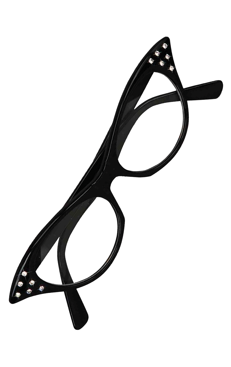 Add some 50s retro style glamour to your halter-neck hop dress, soda pop girl or Grease inspired outfit with these black cat-eye shaped sunglasses, complete with rhinestone detailing. It was all about the rhinestones!