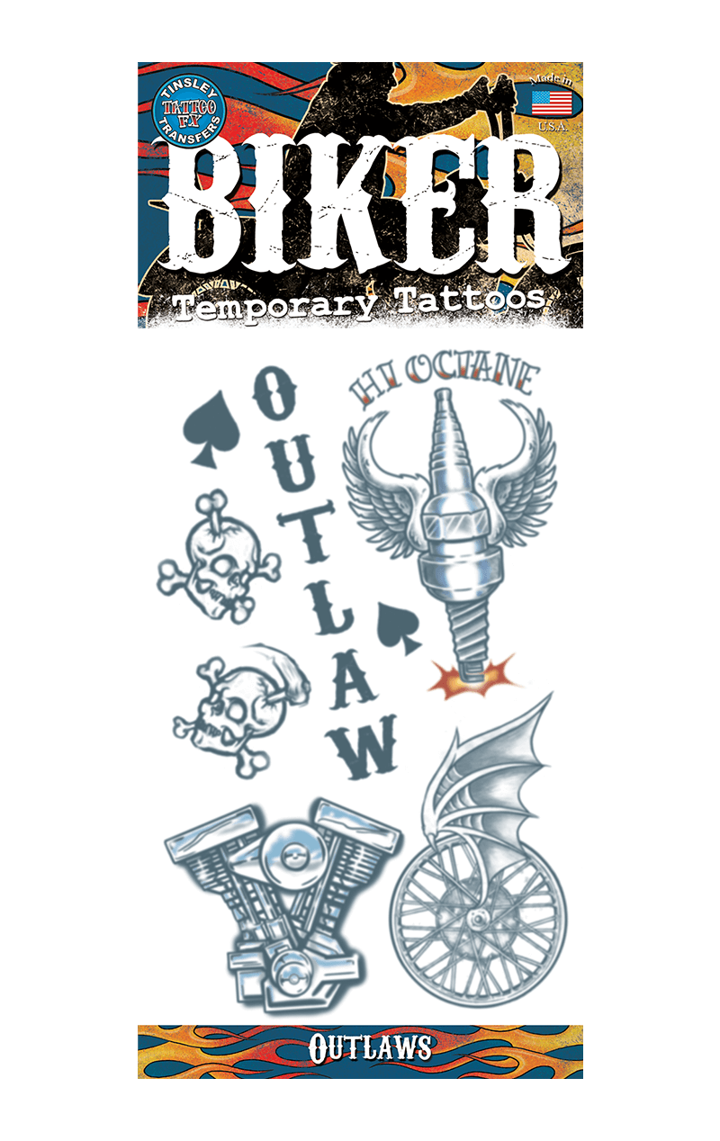 Add some attitude to your Hell’s Angel 80s metal biker/rocker look with our Biker Tattoo Set, featuring skulls, eagles and snakes. Easily applied with water, these are high quality, long lasting tattoos that look great worn on the arm, leg or ankles.