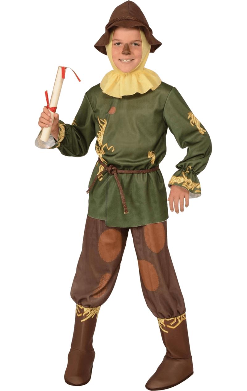 The Children’s Green Scarecrow Costume is made up of a green long-sleeved top with straw detailing printed on the front. It also includes a pair of brown trousers with light patches printed on the front. Completing the look is a beige headpiece with a brown hat and a scroll accessory, so your little one has everything they need to become the first friend of Dorothy’s in the mysterious Land of Oz.