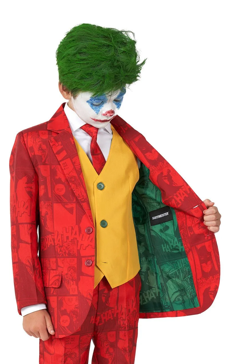 Is your boy an aspiring comic villain? Does he want to stand up against Batman and cause chaos in Gotham City? Well, he can play the role of Batman’s arch nemesis, The Joker, wearing our Kids Scarlett Joker Opposuit Costume. It’s a great costume choice for any superheroes and villains themed party, or when attending Comic Con.