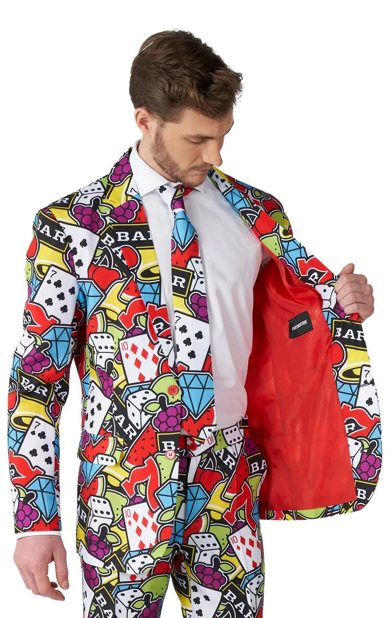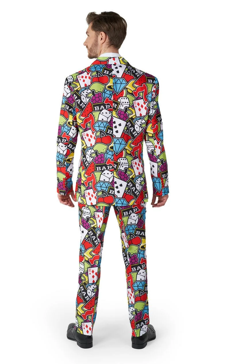 Are you planning a big trip to Vegas with the lads? Do you consider yourself a bit of a winner? It’s time to put your luck to the test as you waltz into the party in our Mens Casino Icons Opposuit Costume. It’s ideal for nights out, parties and of course, a big night out in Vegas. Or if you’re really feeling fancy, how about wearing it to Poker night with the boys?