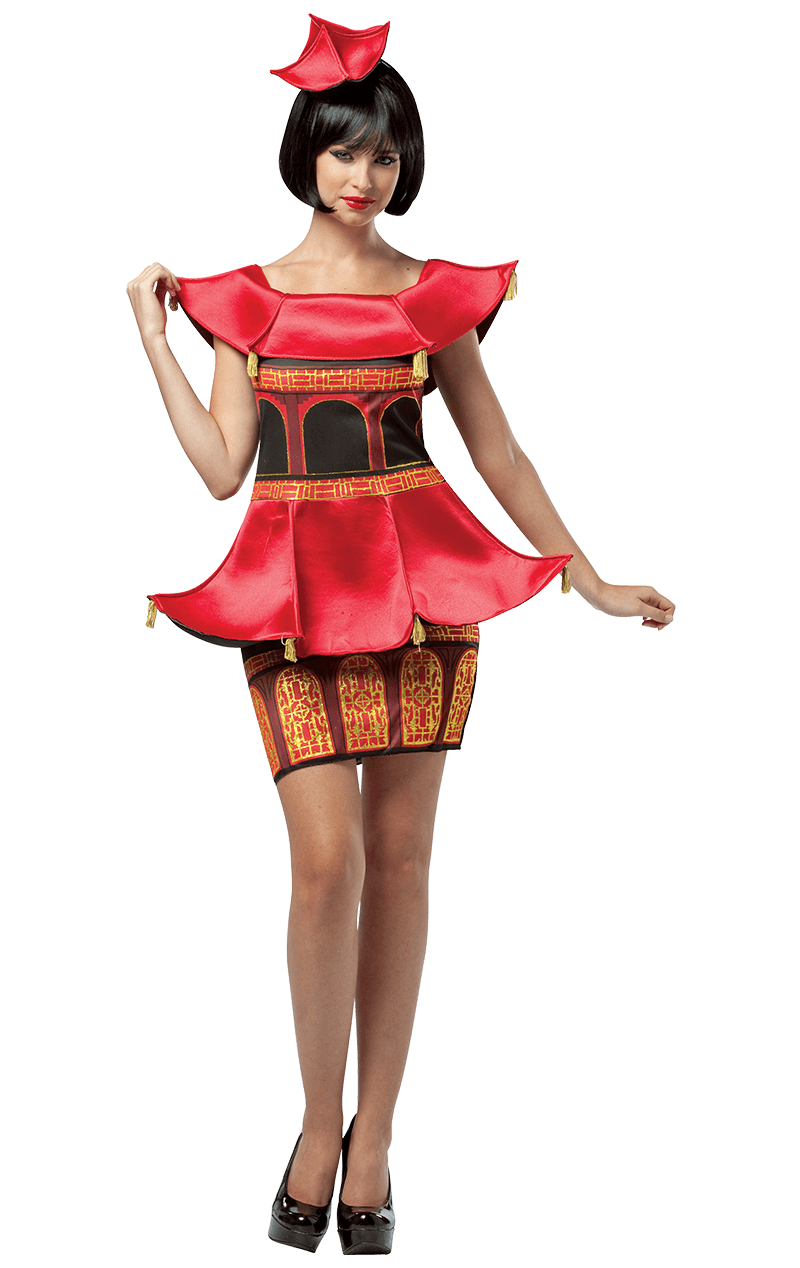 Be as symbolic and holy as a Buddhist temple in our Ladies Asian Pagoda Dress Costume. With golden embellishments and a red as vibrant as this, no one will miss you in this original outfit. Be it for a Chinese themed costume party or a fun asian event, this is the costume for you!