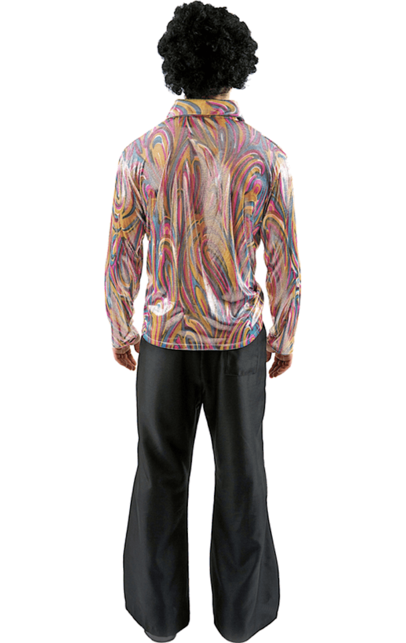 This patterned mens disco shirt is for the guys looking for a funky swag and is the perfect outfit for a 70s fancy dress party.