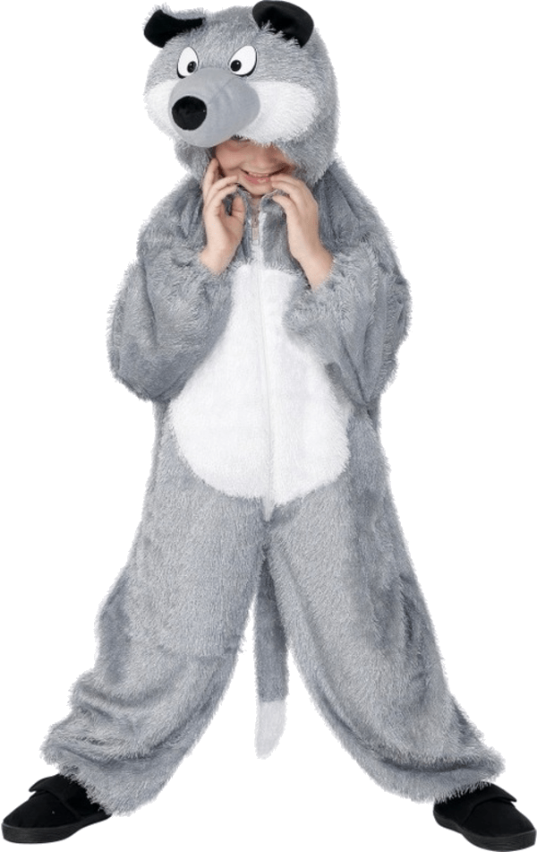 Your little one will have fun playing the baddie in the woods in this grey-and-white furry fabric with a zip-up front and a stuffed tail.