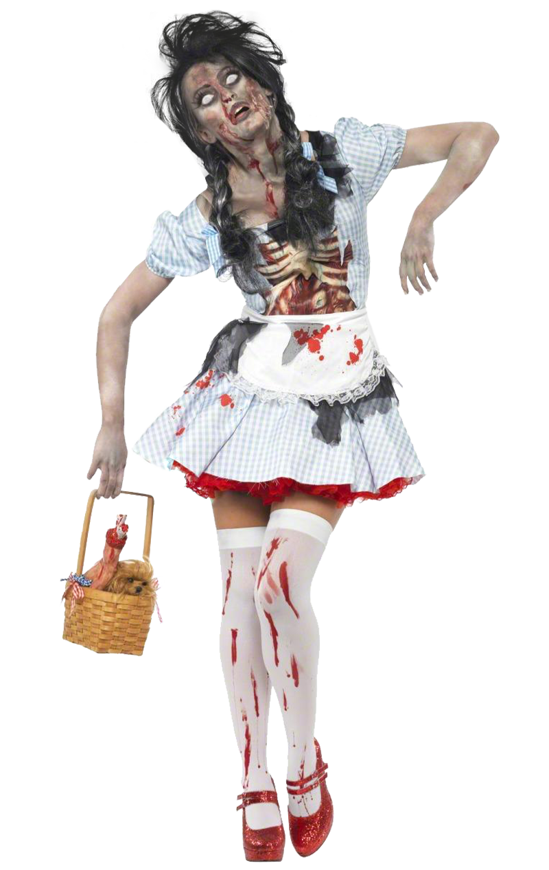 Looks like there was a terrible accident in Oz in our Womens Zombie Dorothy Costume. We don’t think you are in Kansas anymore…