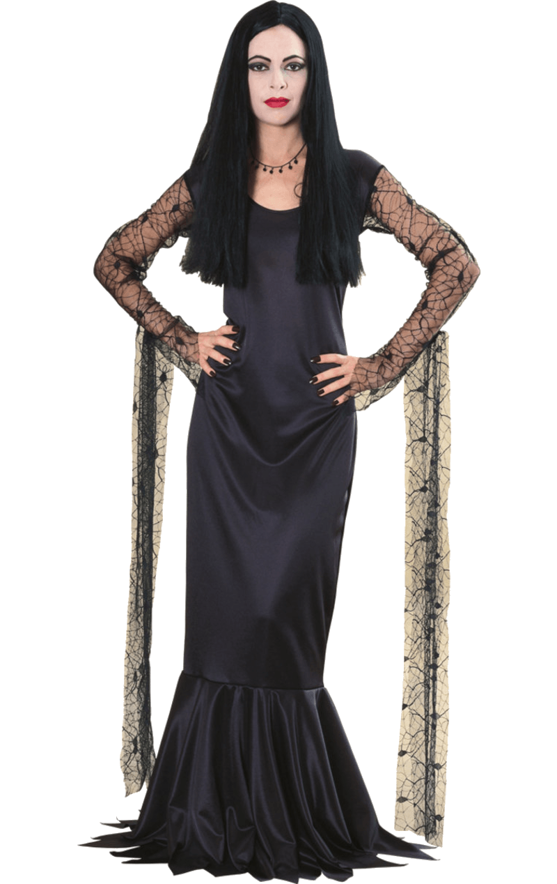 How delightfully tragic! This wonderful officially licenced Womens Addams Family Morticia Addams Costume consists of a black netted sleeved and gothic dress.
